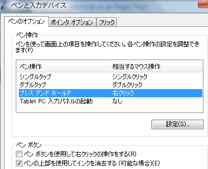 コントロールパネル→ペンと入力デバイス